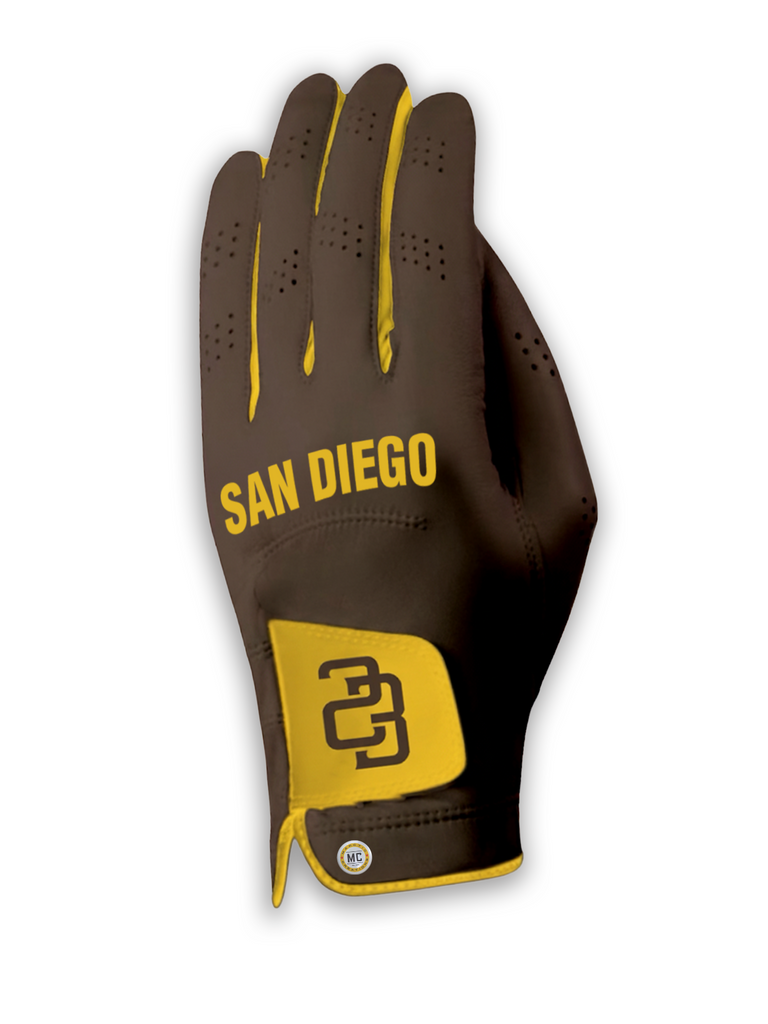 Step into the tee with San Diego pride and swing with 23 swagger. This brown and gold glove isn't just gear, it's a premium grip of Hometown Pride.